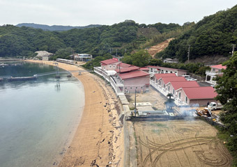 集落を抜けて南岸に出る |