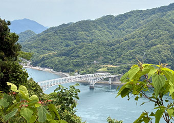 山道から見える豊浜大橋 |