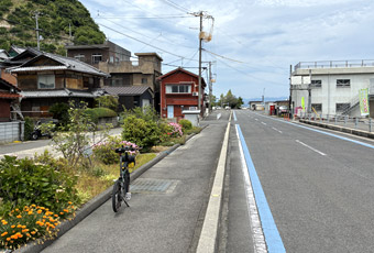 上蒲刈島北岸沿いの道路を進む |