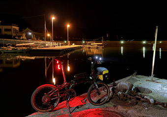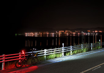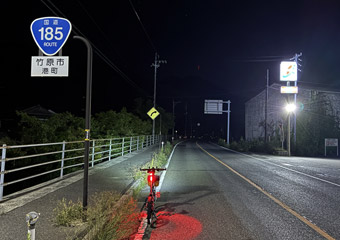 前回の江田島は満月が出ていて走り始めから周囲の風景や海向こうの陸地の輪郭が見えたが、今回は月が出ていなくてほぼ真っ暗。満月が如何に明るいかをここで初めて知った。今回は真っ暗で風景を楽しめないので前回よりも早いペースで淡々と走る。 |