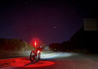 深夜帯からサイクリングをするのは自分くらいのようで、毎回夜明けを迎えて空が明るくなるまで他のサイクリストの姿を見ることは無い。暑さを避けて夜明け前から走るのは賢い選択だと思うが、そういう発想をする人はあまりいないのだろうか。 |