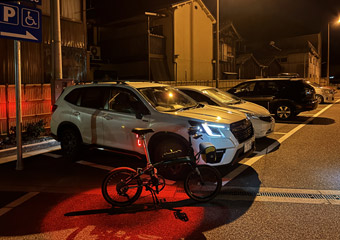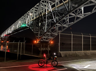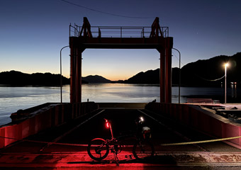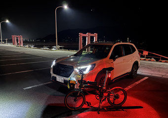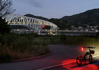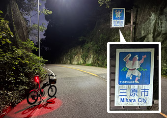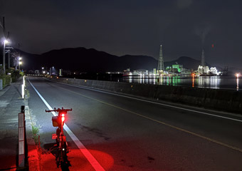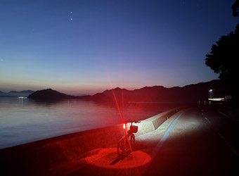 今回で6週連続の深夜2時起きライド。自宅を出るのも毎回同じ2:20。そして3週間振りのかきしま海道江田島一周。自宅からの車移動で利用するバイパスが夜間工事で一部通行止めという予期せぬアクシデントに遭い、本来なら江田島まで60分で行けるところを80分も掛かってしまった。夜間工事で道路を迂回する羽目になったのは初めてだ。まぁそれでも前回の江田島サイクリングと同じ3:40からスタートできたので無問題。 |