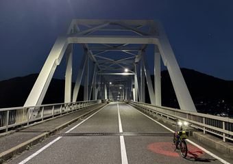 今回で5週連続の深夜2時起きライド。自宅を出るのも毎回同じ2:20。そして4週間振りのとびしま海道。車移動中にいつも立ち寄るコンビニでいつものように補給食のおにぎりを買って、いつものパーキングに3:10到着。そして3:20サイクリングスタート。 |