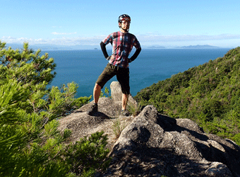 物見台は周囲に日差しを遮るものが一切無く、白い岩盤からの照り返しもあって猛烈に暑い。のんびり風景を眺めながらくつろぐ余裕など無く、写真を撮り終えたら直ぐさま退散。そして山道脇の狭い木陰で立ったまま食事休憩。真夏のサイクリングは本当に暑さとの戦いだ。 |