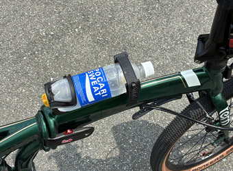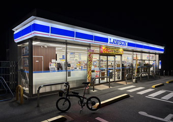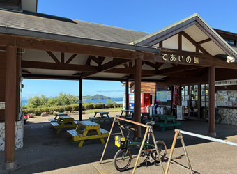 いつもは車移動中にコンビニへ寄って補給食のおにぎりを買っているが、バイパス通行止めによる迂回路走行で運転に時間が掛ってしまったため、車移動中にはコンビニへ寄らずサイクリング開始直後にコンビニへ。江田島の外周路コースには複数のコンビニがあるので便利。 |