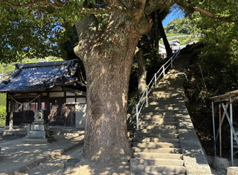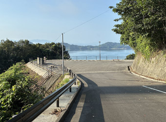今回は岡村港の防波堤ともう1箇所初めての場所を散策。下蒲刈島から安芸灘大橋へ上がる坂道の入り口にある交差点の一角に神社があり、その横にある石段が復路でいつも目に留まって長いこと気になっていた。ただ、石段を上ったところでどうせ何も無いだろうと何となく分かっていたので、疲れた帰り際にわざわさ寄り道する気にはならなかった。で、今回実際に石段を上ってみて、更に続く通路を進んで高台の道路に出るも特に何も無かった。とりあえずこれで気が済んだので満足だ。 |
