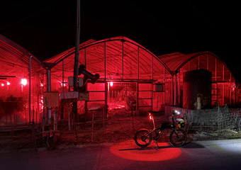 海沿いに出て高崎洞門を抜けると竹原火力発電所の明かりが目に入ってくるが、それよりずっと遠くの海上に煌々と輝く船がいて目を惹く。大型客船でも停泊しているのかと思ったが、それにしても船全体が発光しているかのように明るい。それからSAZANAMIモニュメントの周りにひまわりが沢山咲いている事に気付く。4週間前は咲いていなかった。そんなこんなで闇夜の中で限られた視覚情報を楽しみながら進んでいく。 |