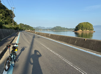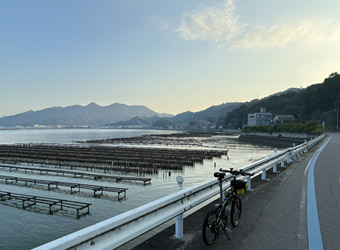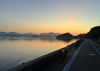 夜明け前スタートでサイクリングを始めてから、しまなみ海道(因島と生口島)・かきしま海道(江田島)・さざなみ海道(竹原⇔三原)と海道コースを毎週走って、とびしま海道の魅力を改めて実感。走りやすい道路と綺麗な瀬戸内風景、そして複数の島を橋伝いに進んでいく正に「海道」と言える稀なコース。サイクリストの聖地しまなみ海道に引けを取らない魅力がある。 |