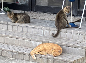 岡村島で朝日を眺めた後は大崎下島の御手洗町並み保存地区に寄り道しようと考えていたが、腹痛で気分が上がらず往路を引き返す。7:00をまわると日差しは強くなり暑さはどんどん厳しくなり、代わりに腹痛は次第に和らぎ体調は回復。腹痛が悪化してトイレに駆け込むような事態にならずに済んでよかった。 |