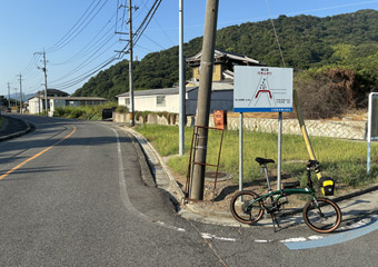 1週間前のとびしま海道サイクリングのように、まだ行ったことのない場所に寄り道すれば新鮮味が出て気分が上がるかも知れないと思い、江田島湾北端の江田島北東部側にある「津久茂 船舶見送り」に寄り道する事に。 |