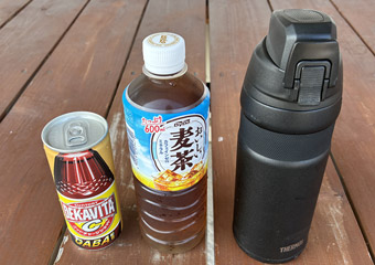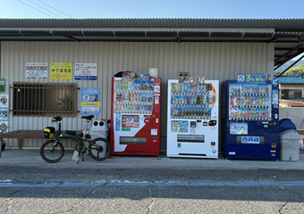 とにかく日陰で食事休憩をしたかったので、展望台までの坂道にできた体観測館の影に入って休憩。座る場所も無いが仕方ない、とにかく日陰での休憩と補給食摂取をしないと身体もメンタルも持たない。もはや日本の夏は災害級の暑さだ、アウトドアには向かない。これ以上寄り道する元気は無いので最短ルートで引き返しつつ、下蒲刈島で今度はドリンク休憩。自販機は何処にでもあるから本当に助かる。 |