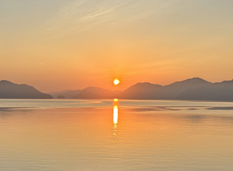 << SCROLL 岡村島北端から眺める朝日 パノラマ写真180° SCROLL >> |