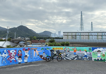 曇天模様の冴えない風景だからと淡々と走るだけではつまらないので、何となく港やパーキングに寄ってみたり目に留まった道路脇の花や防波堤の絵で脚を止めてみたり。本当に何気ない散歩のようなポタリング。 |