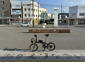 空が晴れたら心も晴れてやる気が出てきたので、このまま道の駅には戻らずJR竹原駅の前にある商店街へ。久しぶりにアニメ「たまゆら」の聖地巡礼をしたくなった。まずは竹原駅の入り口にある「おかえりなさい」で写真撮影。これも作中に出てきたけどなんかイイね。 |