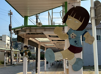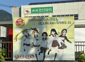 竹原駅前商店街「あいふる316」はたまゆらで町興しをして一時は元気な様子もあったが、現状は営業する店舗が少ないシャッター通り。過疎化が進む地方の駅前商店街のリアルがここにある。それでもまだ商店街にはたまゆら関連のものが点在している。 |