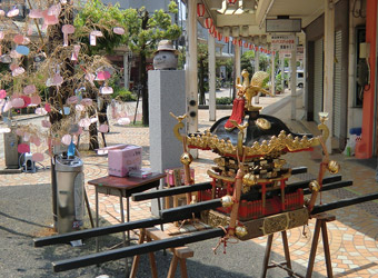 この商店街では何度かたまゆらのイベントが開催されているが、2012年7月に開催された「ももねこ様祭り」に参加している。東京から広島に移住する10日くらい前の事で、賃貸契約手続き等のために東広島を訪れたついでにイベントに参加した。あれから13年も経っている事を考えると感慨深い。 |