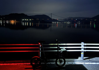 上蒲刈島から見る下蒲刈島と本土の夜景 |