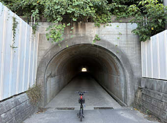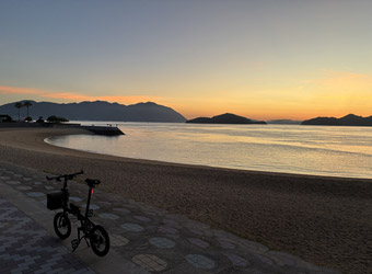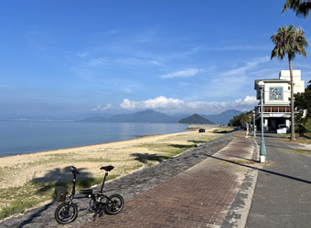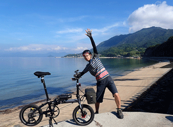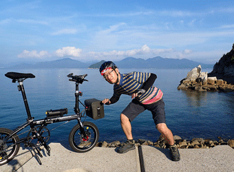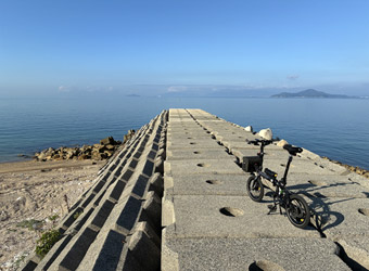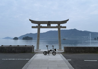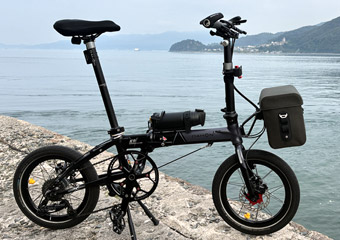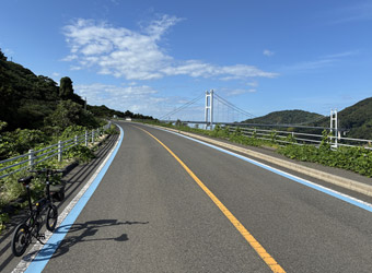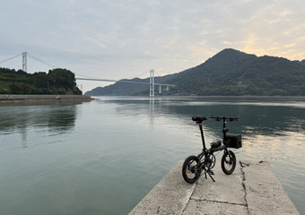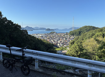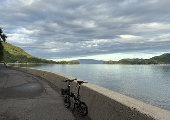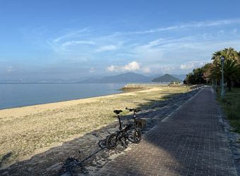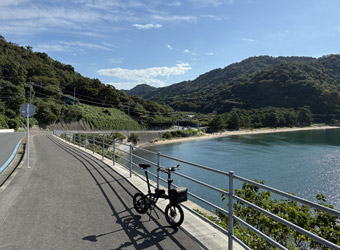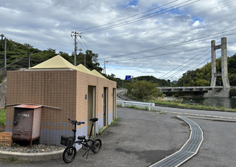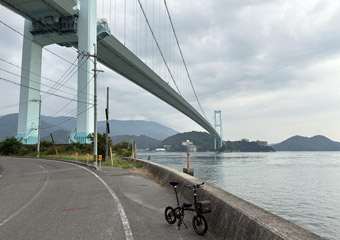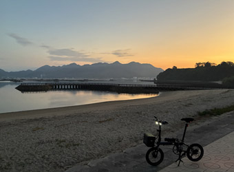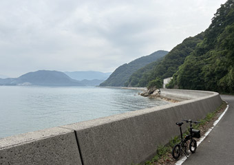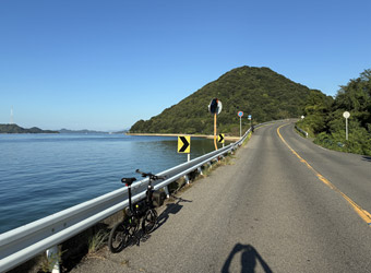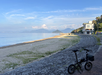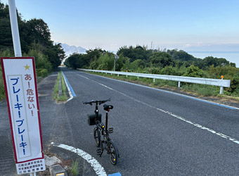 ところで、ここ数回のサイクリングは走行距離50km以下が続いているので、そろそろ70〜90km程度の距離を走っておかないと身体が鈍ってしまうのではないかと心配になってきた。基本的にミニベロサイクリングはガッツリ走るより風景を楽しみながらのポタリング的な走り方の方が楽しいが、小径車でもある程度の距離(100kmが目安?)を走れる体力は備えておきたい。もう少し涼しくなったらとびしま海道全島一周90kmを走りたいと思った。 |