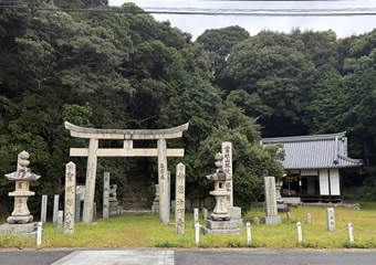 予定通り日の出時刻の5:35に日高神社の海岸鳥居に到着するも、朝焼けも全く無いし朝日が見られる望みも全く無さそうな空模様。それでも念のため暫く鳥居の前で待機していようと思ったが、細い虫が何匹も顔の周りを飛んで耐え難い鬱陶しさにその場を離れる。しつこく耳元にまとわり付くあの羽音には本当にイライラさせられる。日高神社の周りは木々が鬱蒼と茂っている。夏場は山や木の多い場所に細い虫が必ずいるので、そういう場所へ行くのは極力避けたい。 |
