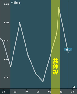 悪天候が続いた盆休み前半にグンと体重増加 |