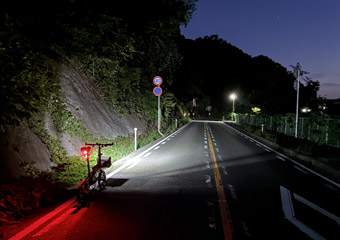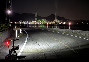 不眠&身体不調状態なのでいつも以上に安全意識を待って走行。特に下り坂でのスピードの出し過ぎに注意。6:00の日の出時刻までに岡村港に到着して日の出を見ようと考えていたが、時間には十分余裕があるので急ぐ必要はない。そもそも前日夜遅くまで雨が降っていた関係で空にはまだ雲が広がっていて、日の出どころか朝日も見られないだろうと思っていた。そんな曇天だろうが不眠だろうが身体不調だろうが、風邪による三連休引きこもりでストレスが溜まっていたのでサイクリングで心身のリフレッシュをする必要があった。 |