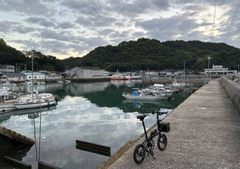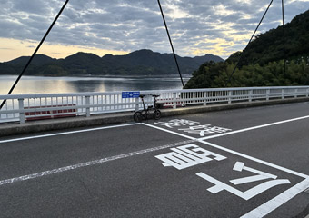 日高神社で雲間から覗く朝日を見た後は一度も日が差さないままサイクリング終了。走行距離は上蒲刈島と下蒲刈島の二島を一周して50kmだった。終始曇天模様で風景は全く楽しめず、カロリー消費量は多分大したことなく、かなり不完全燃焼なサイクリングになってしまった。まぁこんな日もあるさと割り切る。 |