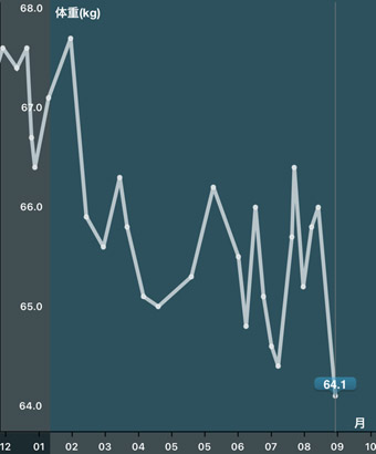 サイクリングから帰宅してシャワーを浴びた後はいつも体重測定をしている。で、今回の体重は64.1kgで想定外の大幅減。前週末は風邪で自宅に引きこもっていたし2週間振りのサイクリングなので、前回のサイクリング後の体重よりも増えていると思った。もしかしたら風邪や不眠でやつれたのかも知れない。とにもかくにも2019年7月から体重測定を始めて以来の最低値を更新。47歳(独身)身長177cmで64kg台は少々痩せ過ぎな気がする。個人的にはちょい痩せ気味の65〜66kgが理想体重だと思っている。 |