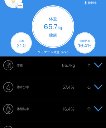 晩酌と夕食を済ませ再びシャワーを浴びた後の体重 |