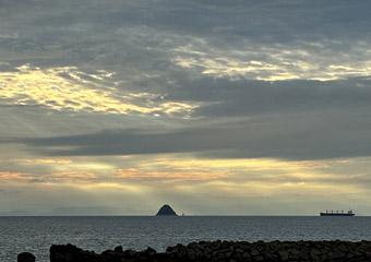 << SCROLL 因島北部東岸から見る朝日 パノラマ写真180° SCROLL >> |