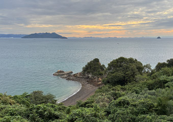 朝日を十分満喫したところで因島一周スタート。日の出を迎えてからは徐々に雲が退いて晴れ間が広がる事を期待したが、そんな様子は全然なく朝日はやがて厚い雲に隠れてしまう。日差しの無い曇天下では周囲の風景が映えず気分は上がらない。しかも二週連続の曇天サイクリングになってしまったので余計に気分は上がらない。 |