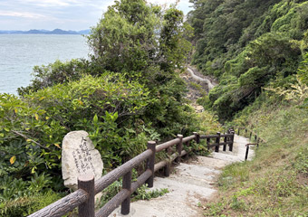 遊歩道の階段道を下りる |