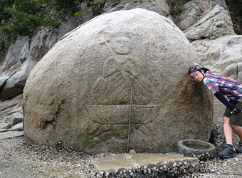遊歩道側から見る地蔵石 |