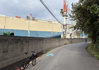 淡々と走り続けて造船所の横を通る |