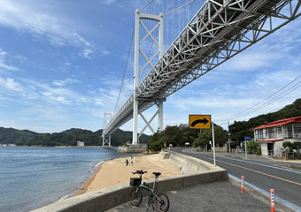 それにしてもしまなみ海道はサイクリストの姿が多い。ロードバイク乗りは当然ながら非常に多く、とびしま海道では少数派?の小径車乗りも沢山見かける。それとしまなみ海道にはレンタサイクルの営業所が沢山あるので、サイクリングで観光を楽しむ一般の行楽客も非常に多い。さらにはインバウンドの影響で外国人の姿も目立つ。自分のホームコースであるとびしま海道は瀬戸内海を代表するサイクリングコースのひとつで「第二のしまなみ」・「裏しまなみ」などとも呼ばれているが、その割には休日でもサイクリストの姿は少ない。そんな静かなコースをメインに普段は走っているので、しまなみ海道の自転車の多さにはちょっと落ち着かなかった。 |