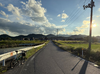 ここ暫く週末の度に天気が悪い。前週末は土曜日が雨天で日曜日の朝まで曇天、その前の週末も土曜雨天の日曜朝まで曇天、さらにその前の三連休は毎日曇り時々雨(どのみち風邪で引きこもってたけど)。そして今週末も土曜日が曇り時々雨で日曜日の昼まで曇りの天気予報だったので、瀬戸内へサイクリングに出掛けるのは諦めた。ただ、近頃色々とストレスが溜まって飲酒が増えて体重増加も気になるので、少しでも自転車を漕いでカロリー消費と気分転換をしたかった。という事で、雨で濡れた道路が完全に乾いて青空が広がるようになった日曜日の夕方から近所をポタリング。 |