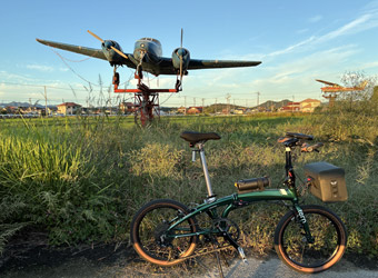 自宅からのスタートが16:00過ぎで、多分かなり久しぶりとなる夕日に照らされながらのサイクリング。Verge N8のメタリックグリーンのフレームは朝日を浴びると綺麗に発色して非常に映えるが、日没が近づいた夕日を浴びても同じように発色。Verge N8の購入は店頭でスポットライトに照らされたこのフレームを見て一目惚れしたのがキッカケ。それとタイヤサイドが飴色の「BILLY BONKERS」も日差しを浴びると明るいハッキリした色味になり、メタリックグリーンのフレームと色合わせも良く自転車の存在感が増していい。自転車選びは性能やデザインだけでなく色も重要。 |