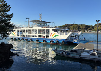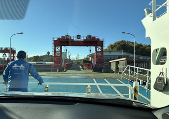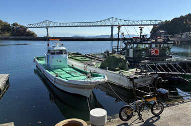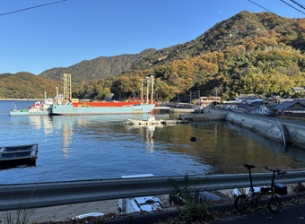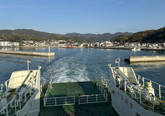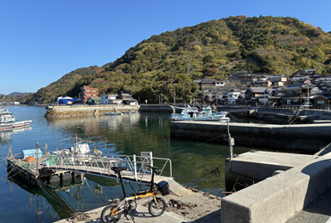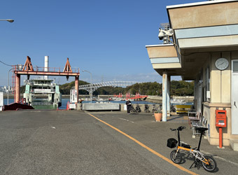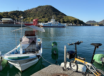 11月半ばにもなると朝は冷え込むので早起きサイクリングは終了。7:50に自宅を出て車を40分走らせ、安芸津港前のコインパーキングに駐車。そして安芸津港8:50発のフェリーに乗って大崎上島の大西港に9:25到着。 |