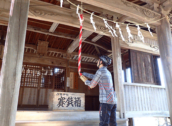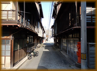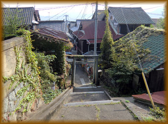 木江の古い街並み保存地区にある神社にも寄ってみる。以前は鳥居が周りの民家に埋もれるように立っていたが、今は建物が取り壊され鳥居の周りは開けた状態。高台にある境内から木江の古い街並みを見下ろしても、瓦屋根の家々がひしめき合う風景がすっかり無くなっていた。時代の移り変わりというものに寂しさを感じた…なんて思うのは自分が心身共に歳を取った証拠かも知れない。 |