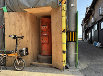 狭小路地に古い家屋が建ち並び昔ながらの家並み風景が残されていた「木江の古い街並み保存地区」が解体工事されていた。前回訪れた時に建物が少し減ったなと思ったが、今回の訪問時はひと区画丸々解体されていた。ここは東京から広島に移住して間もない頃に初めて訪れた時から印象に残っている場所だったので、その風景が丸々無くなってしまった事に一抹の寂しさを覚える。建物の老朽化や廃屋化が解体の主な理由と思われ。 |