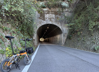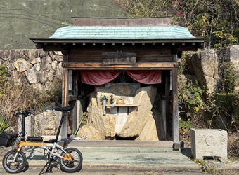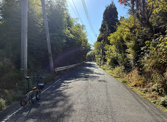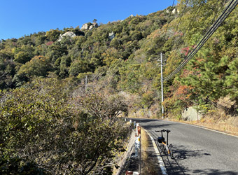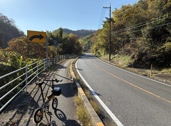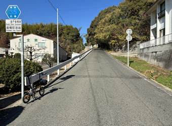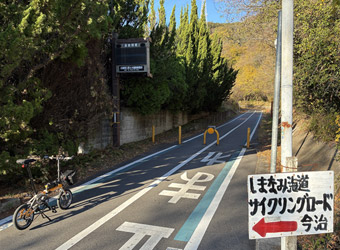 2ヶ月前にN8で因島一周サイクリングをした時は東岸沿いのアップダウンを繰り返すルートを走ったが、K3ではかなり険しい道のりになるので今回は回避。因島北岸から内陸部を通る道路に入り南下して行き、最短ルートで自転車神社へ向かう。その途中にK3には難所的な長い長い上り坂。今回のサイクリングでしんどい坂道はここだけなので許容できるが、やっぱり長い坂や急坂はK3だと身構えてしまう。 |