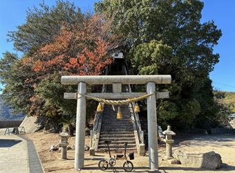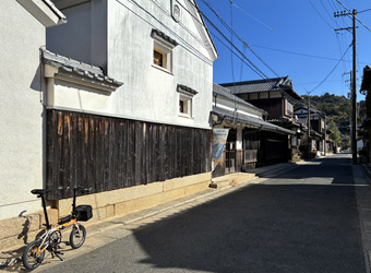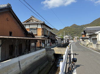 伊勢社の隣には石灯籠が建つ砂浜海岸の出入口があり、こちらもなかなかいい雰囲気。こういう偶然の発見があるとサイクリングはより楽しいし、思い出として記憶に残りやすい。ついでに鹿老渡の住宅地も軽く散策。観光地になっていると思われる白壁の建物があったが、営業はしていない様子だった。地理的にも知名度的にも倉橋島南端の鹿老渡まで観光に訪れる人は非常に少ないと思われ。 |
