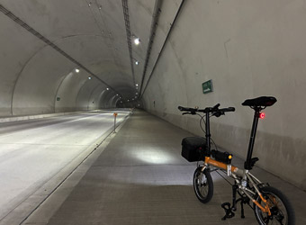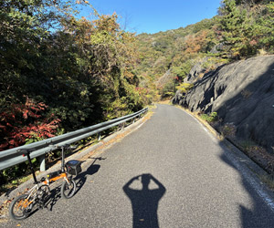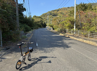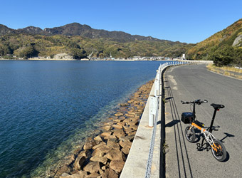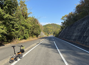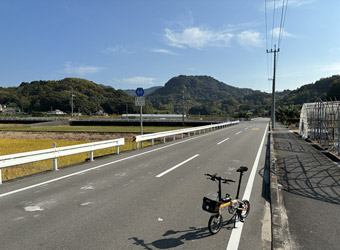 大西港から走り始めて暫くは上り坂がほとんど無く、14インチ×3段変速のK3でも快適走行。極太タイヤのビッグアップルに履き替えて乗り心地も走行安定性も飛躍的に上がり、N8やK9Xとほぼ同じ感覚でリラックスして走れる。カスタム次第でK3がこんなに快適な自転車になるとは思わなかった。 |