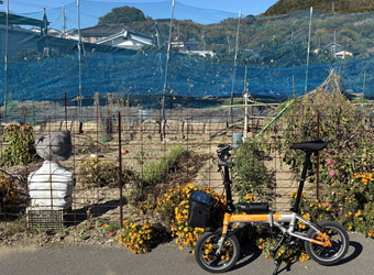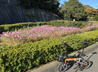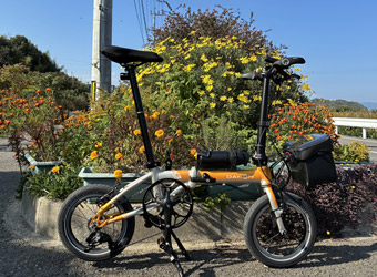 流石に14インチのK3で高速巡行しようという気にはならず、平地でも基本的に20km/h以下のゆるゆるペースでポタリング走行。3段変速のトップギアに入れてしっかりペダルを踏み込めば25km/h以上の巡行もできるが、自分の脚力では直ぐに疲れてしまう。自分にとってK3は距離短め上り坂少なめのポタリング向け自転車。 |
