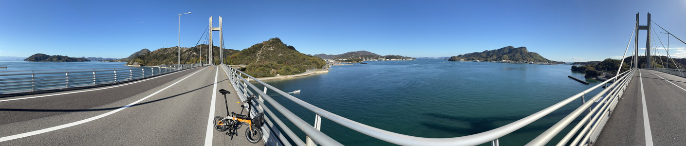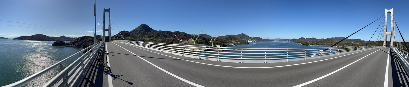 << SCROLL 因島西岸から見る生口島と生口橋 パノラマ写真180° SCROLL >> |