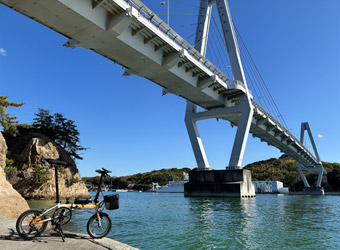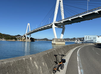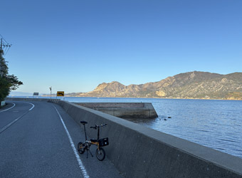 K3初の瀬戸内サイクリングは離島の大崎上島一周。外周コースは約35kmと短めで坂道も少ないので、14インチ小径車でのんびりポタリングするのに丁度いい。大崎上島を走るのは2025年1月以来の10ヶ月振りという事もあって楽しみにしていた。 |