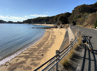 これと言った観光スポットは無くても快晴の下で海沿いを走るだけで気分が良くて楽しい。海沿いサイクリングはコース選定以上に天気が重要だ。曇天で空も海も灰色掛かっていたら風景を楽しめないしリフレッシュにもならない。K3の瀬戸内デビューが快晴で本当によかった。 |