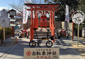 再び因島大橋を渡って向島に戻り、マイカーを駐めたパーキングに12:50帰着。走行距離は約35kmで所要時間はちょうど4時間。前週の倉橋島鹿島サイクリングから一転してK3には丁度いいポタリングになった。一番の目的だった自転車神社の御守りも手に入れたし、前回の因島サイクリングでは買えなかったはっさく大福も買えたし、さくみちゃんステッカーでK3のドレスアップもできたし(笑)。走行距離の短いゆるポタながらも充実感と満足度の高い瀬戸内サイクリングを満喫できた。 |