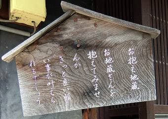 お抱え地蔵は小高い丘の中腹にあり、地蔵のある場所から竹原の町並みをある程度見渡せる。お堂に置いてある記帳ノートを見てみると…予想通りたまゆらネタが多い。石のお抱え地蔵を持ってみると、やはり思っていたよりもずっと重い。願いを叶えたいならばもの凄く重いと思って持った方がいい。 |