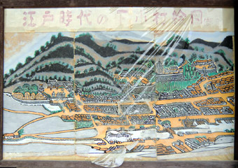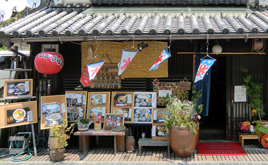 本町通りの近くに「日の丸写真館」と大きな文字が掲げられた古い木造3階建ての建物がある。この味のある写真屋さんもたまゆらの作中に出てくる建物で、ショーウィンドウにはたまゆら関係のグッズが複数展示されている。現在は営業していない様子。 |