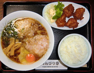 本町通りにある赤提灯と氷旗をぶら下げた定食屋、のんびり亭。生卵とととろの入った「たまとろりんラーメン」に惹かれ注文。たまとろりんの「たま」は、別にたまゆらとの関係は無い…と思う。 |
